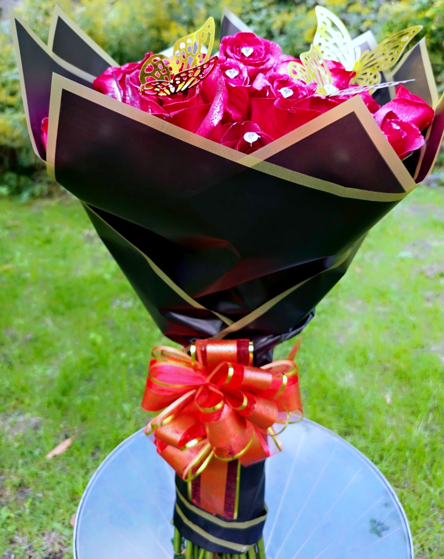 Montrez-lui que votre amour pour elle / lui est immuable et inébranlable avec ce magnifique bouquet de 48 roses rouges, naturelles et fraîches. Une touche de brillants et diamants pour réhausser la beauté de ce bouquet.